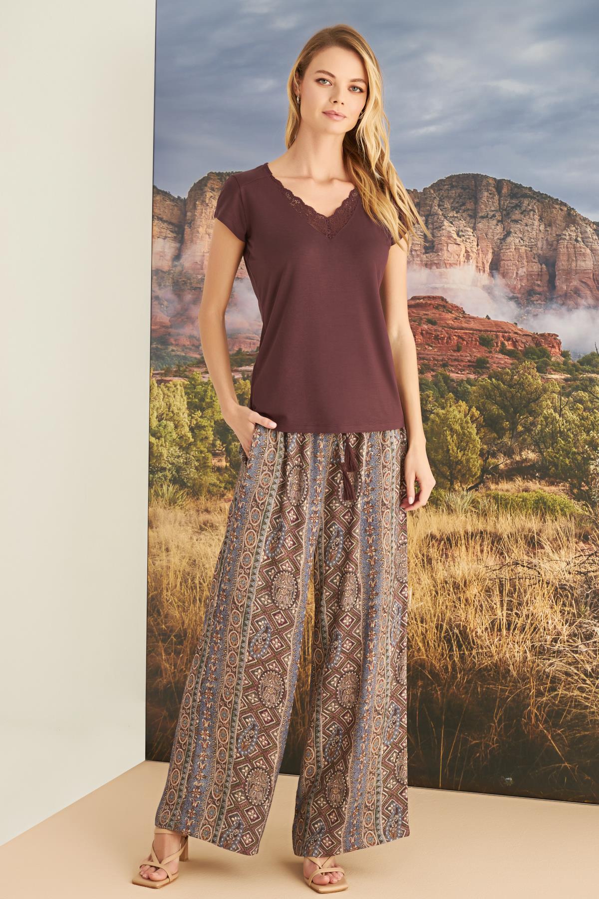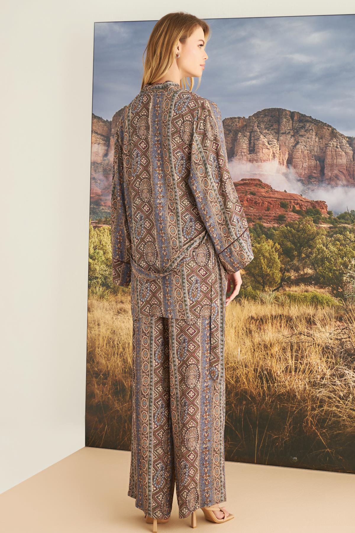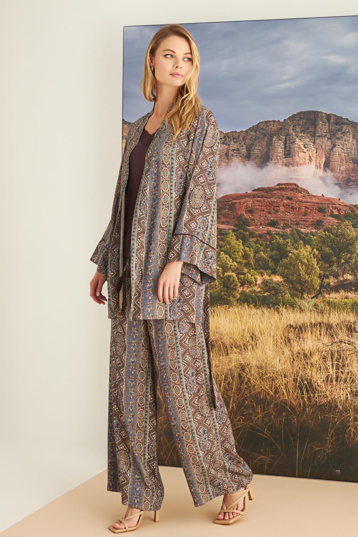 Sabahlık: Etnik desenlidir, uzun kolludur, kuşaklıdır, örme kumaştırÜst: Mürdüm renklidir, V yakalıdır, kısa kolludur, yakası dantellidir, örme kumaştır.Alt: Etnik desenlidir, önden bağcık püskül detaylıdır, örme kumaştır.