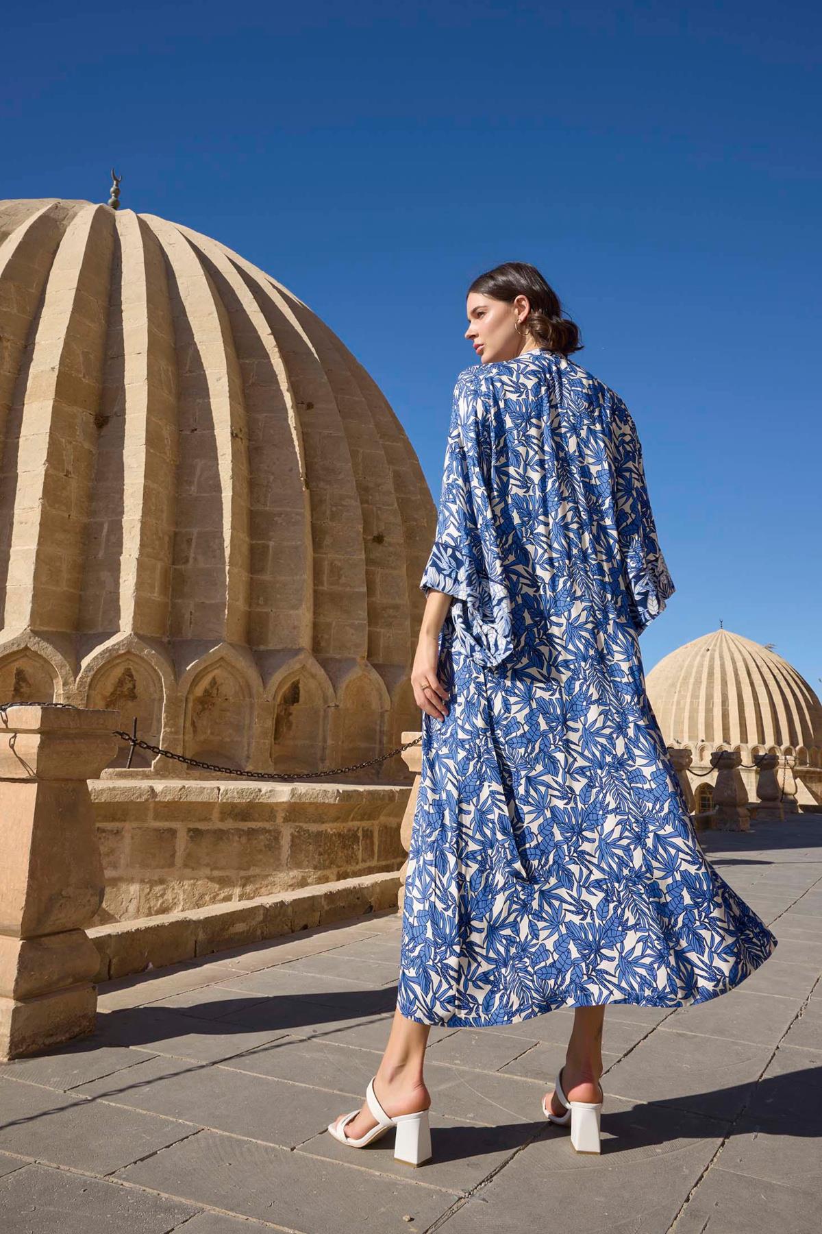 Sabahlık: Beyaz zemin üzerine yaprak desenlidir, 3/4 kolludur, dokuma kumaştır. Gecelik: Lacivert renklidir, derin V yaka dekoltelidir, ip askılıdır, yakası dantellidir, dokuma kumaştır.