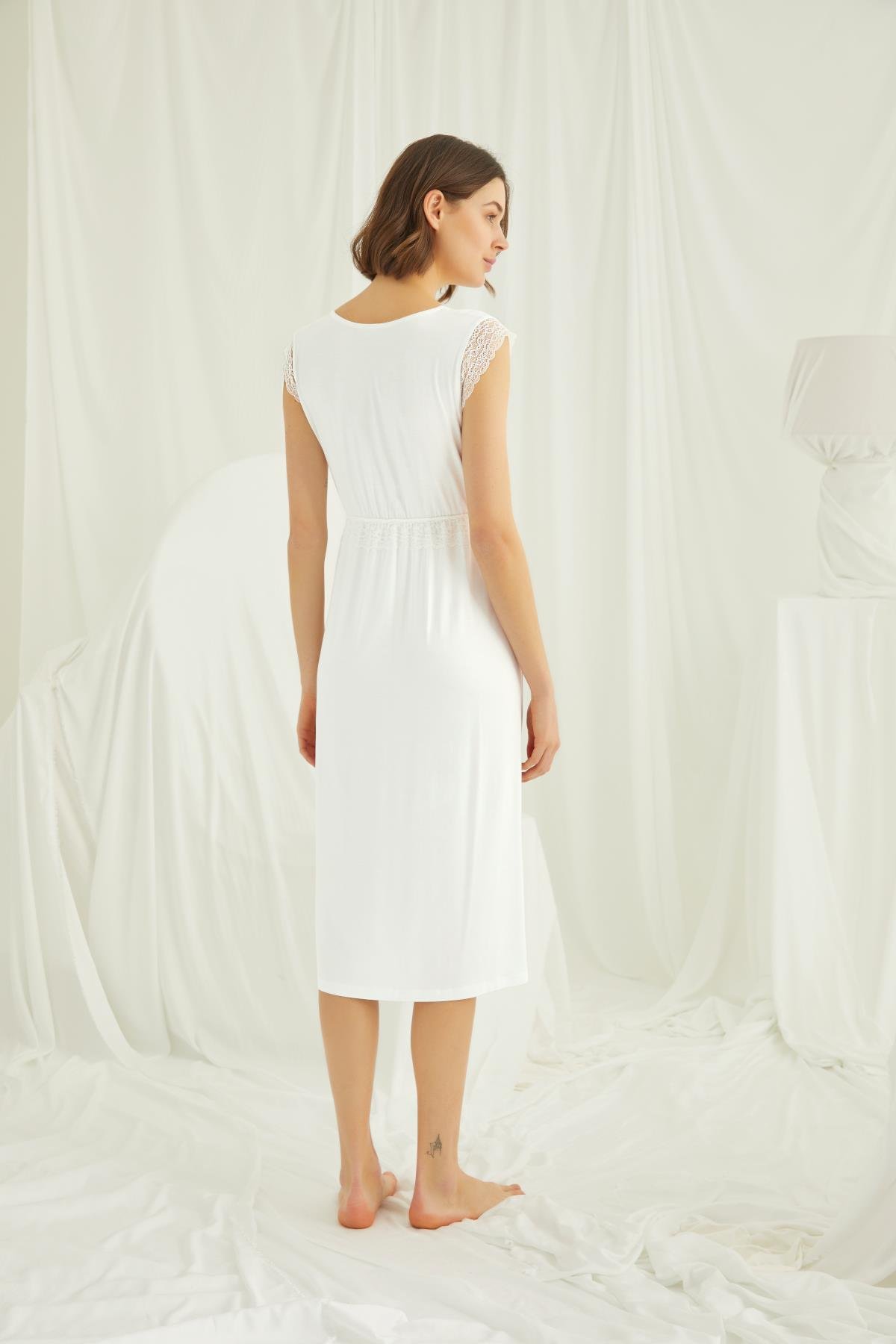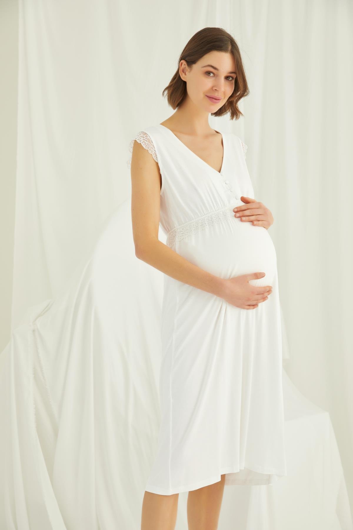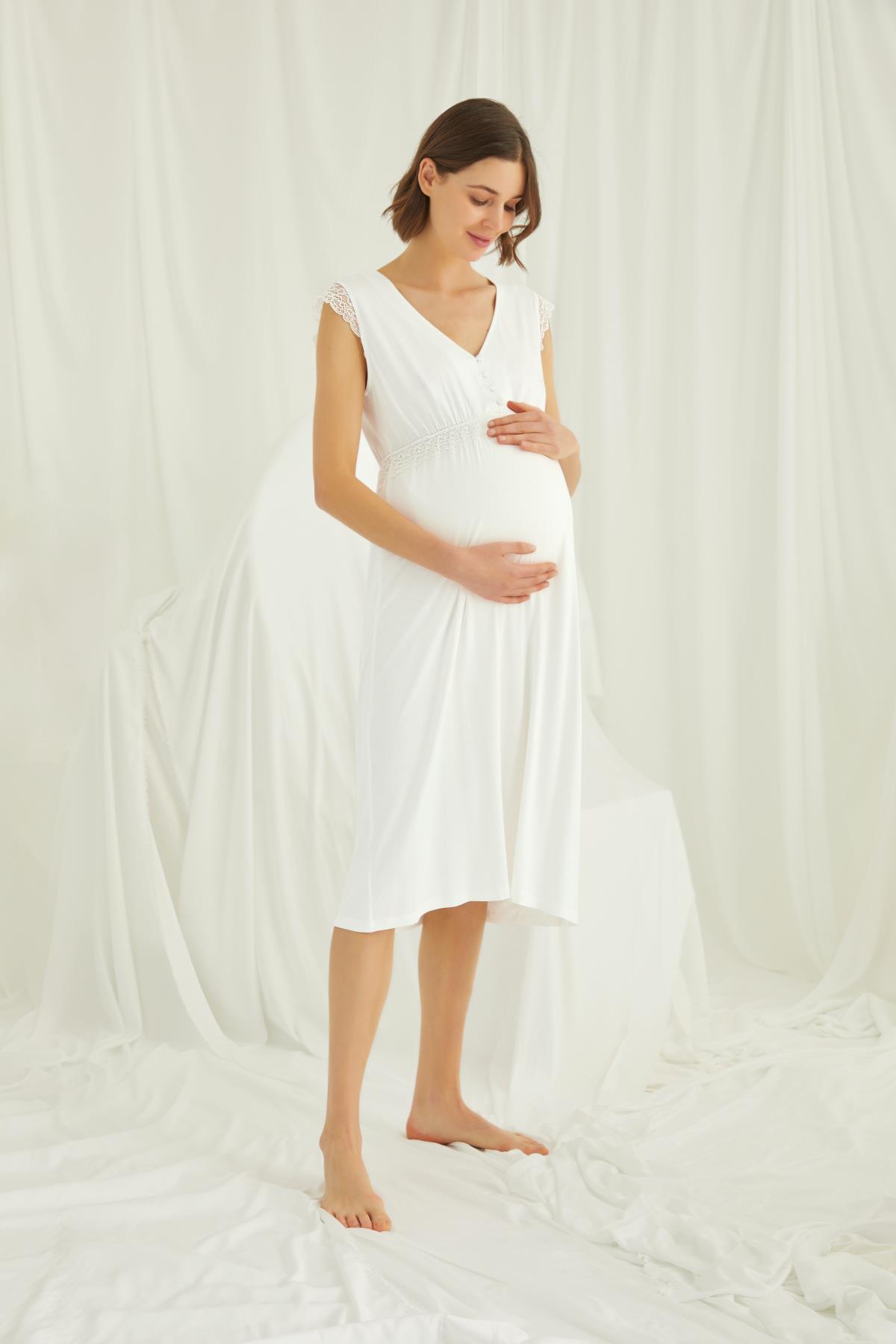 Gecelik: Ekru renklidir, V yakalıdır, kolu ve beli dantellidir, yakasının altı düğmelidir, emzirme için düğmelerden açılır durumdadır, kısa kolludur, örme kumaştır.