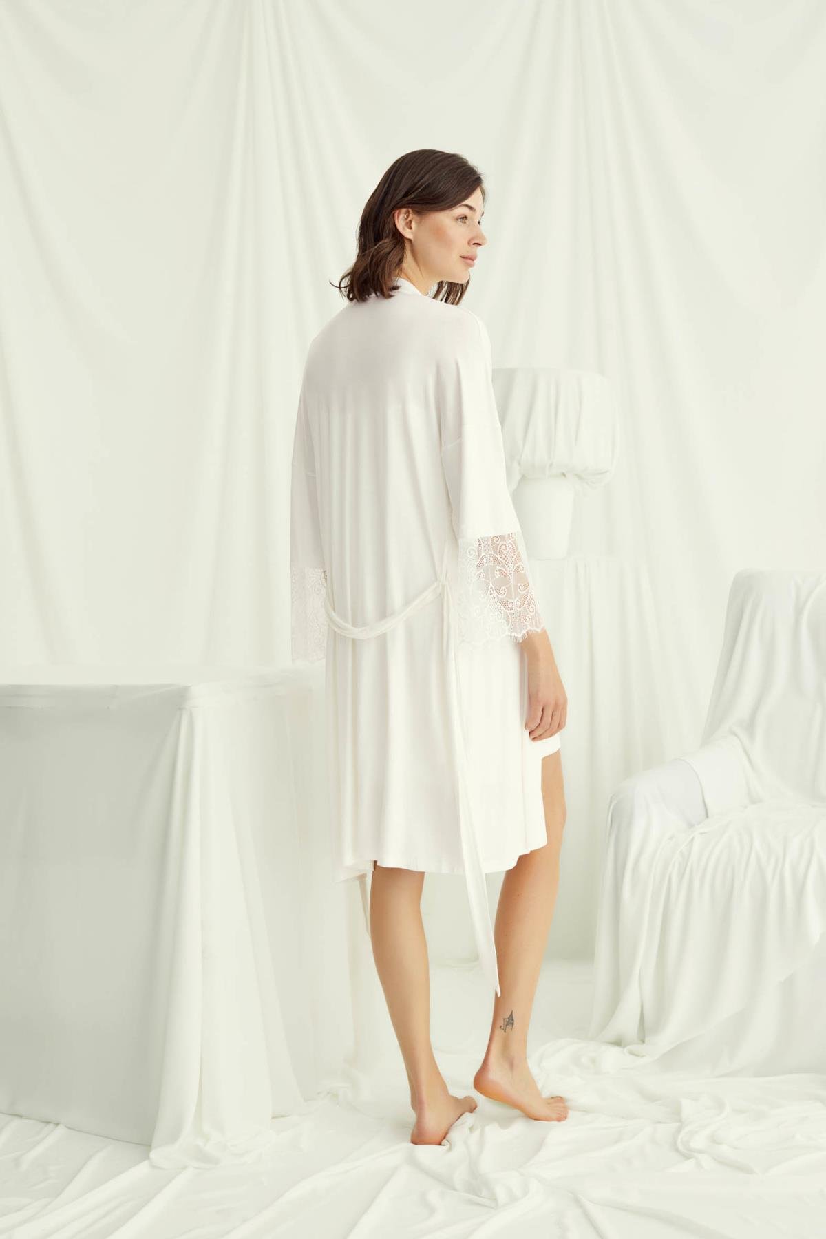 Sabahlık: Ekru renklidir, kolu dantellidir, uzun kolludur, kuşaklıdır, örme kumaştır. Gecelik: Ekru renklidir, ayarlanabilir ip askılıdır, derin V yaka dekoltelidir, göğüs kısmı dantellidir, örme kumaştır.