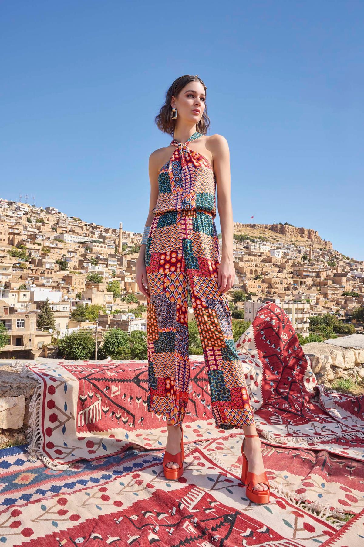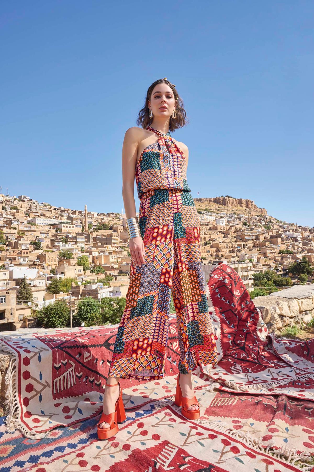 Tulum: Etnik desenlidir, * yakalıdır, dokuma kumaştır.