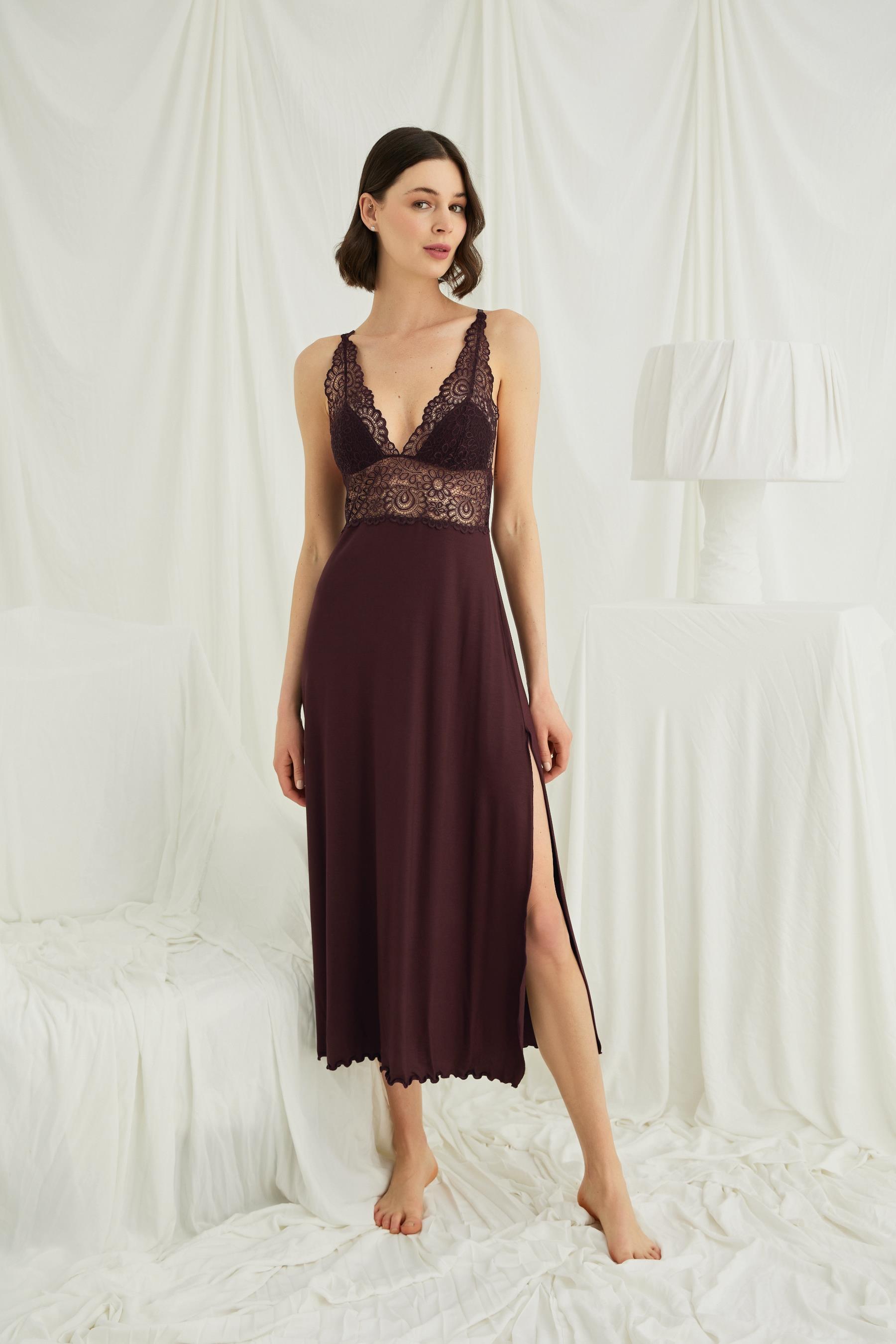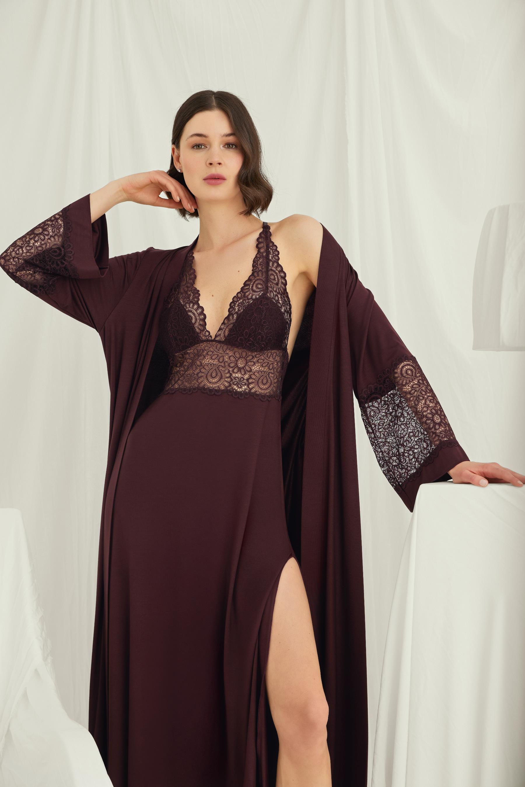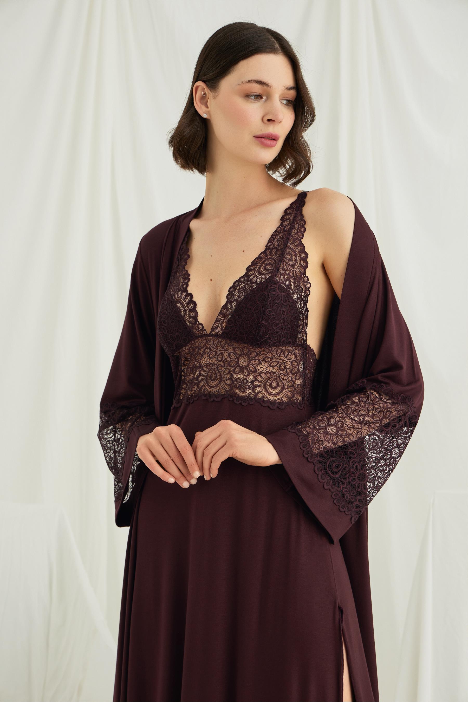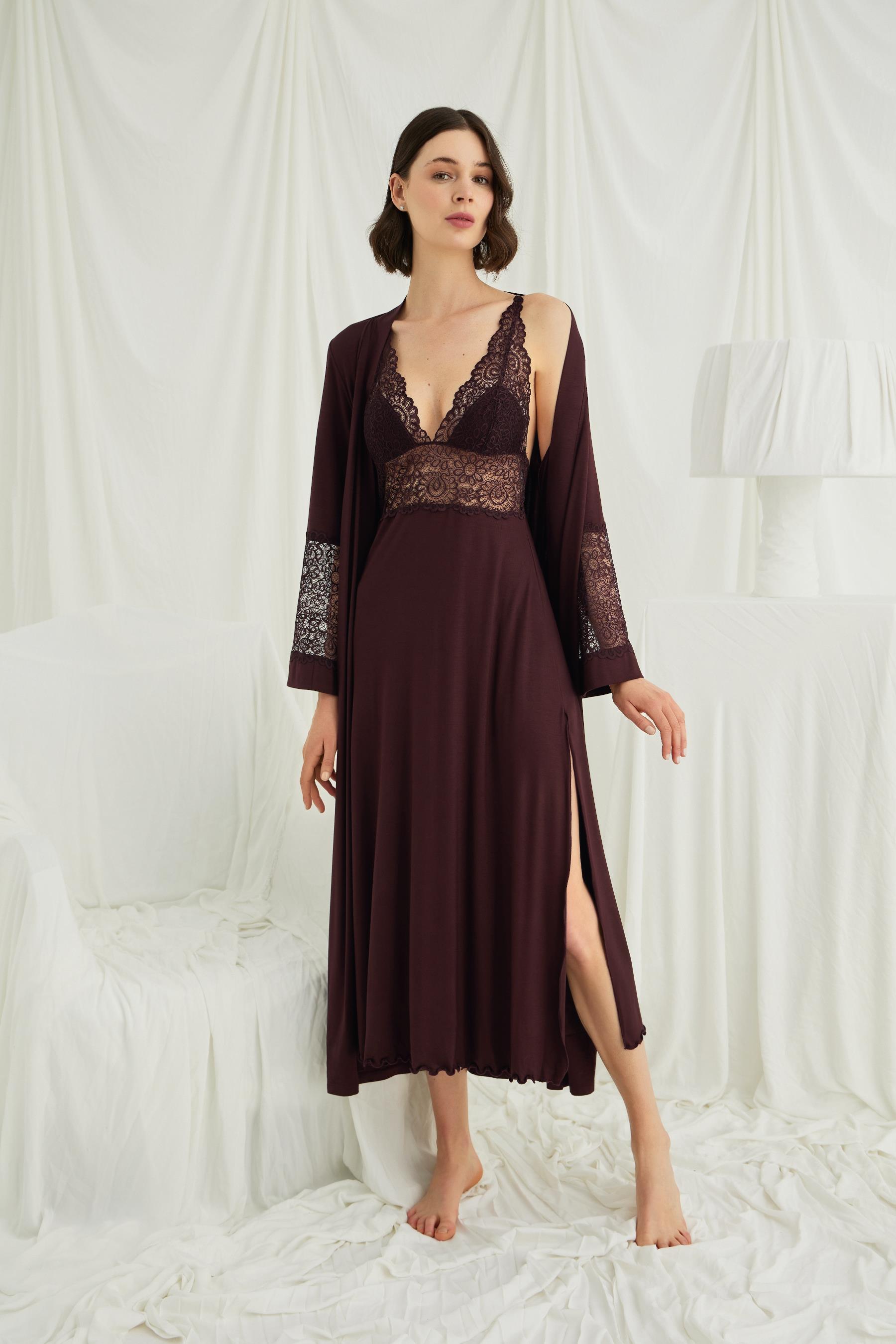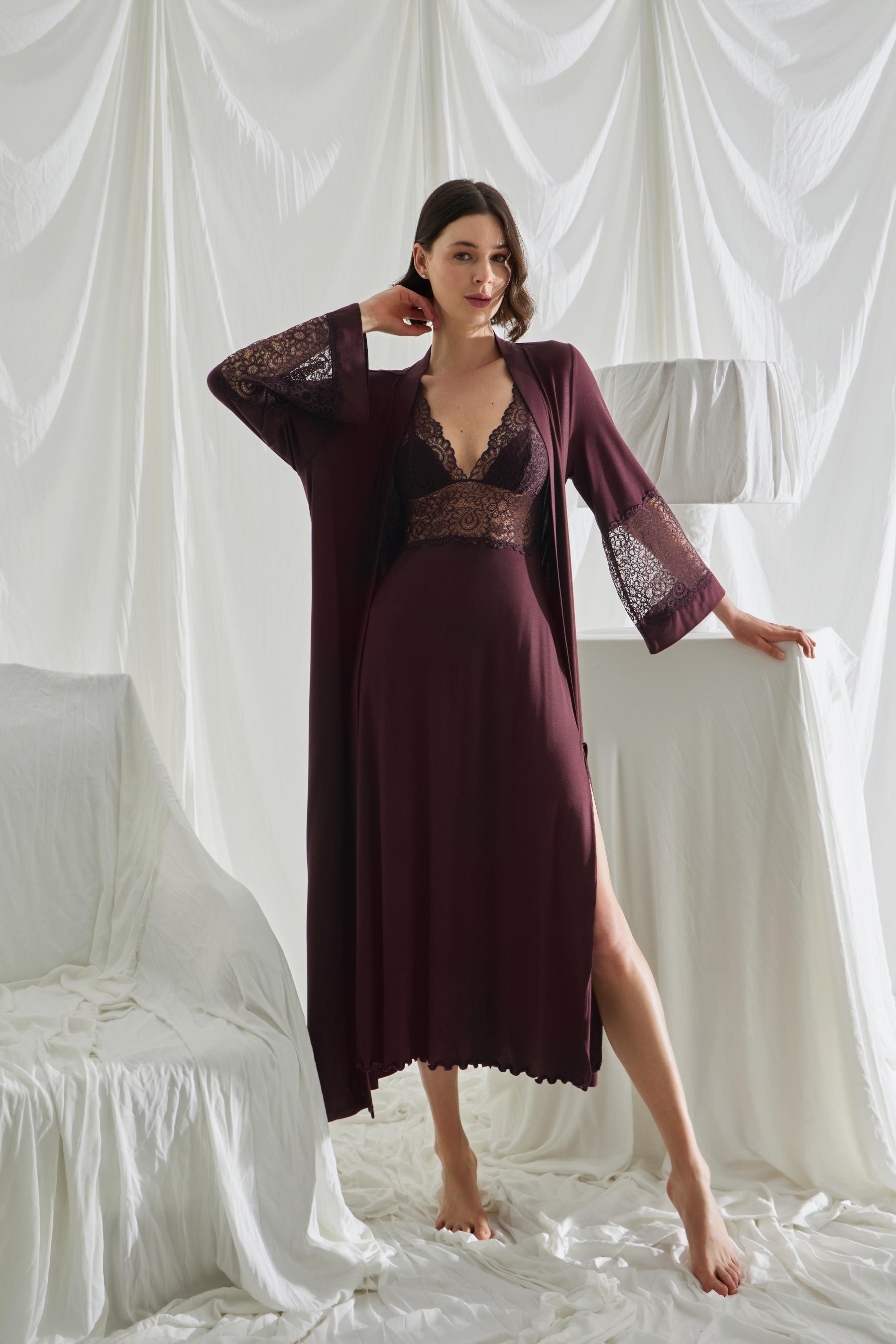 Gecelik: Mürdüm renklidir, derin V Yakalıdır, göğüs ve sırt dekoltelidir, ayarlanabilir ip askılıdır, yakası, beli, göğüs altı ve ön askı kenarları ile sırtı dantellidir, yırtmaçlıdır, örme kumaştır. Sabahlık: Mürdüm renklidir, uzun kolludur, dantellidir, kuşaklıdır, örme kumaştır.