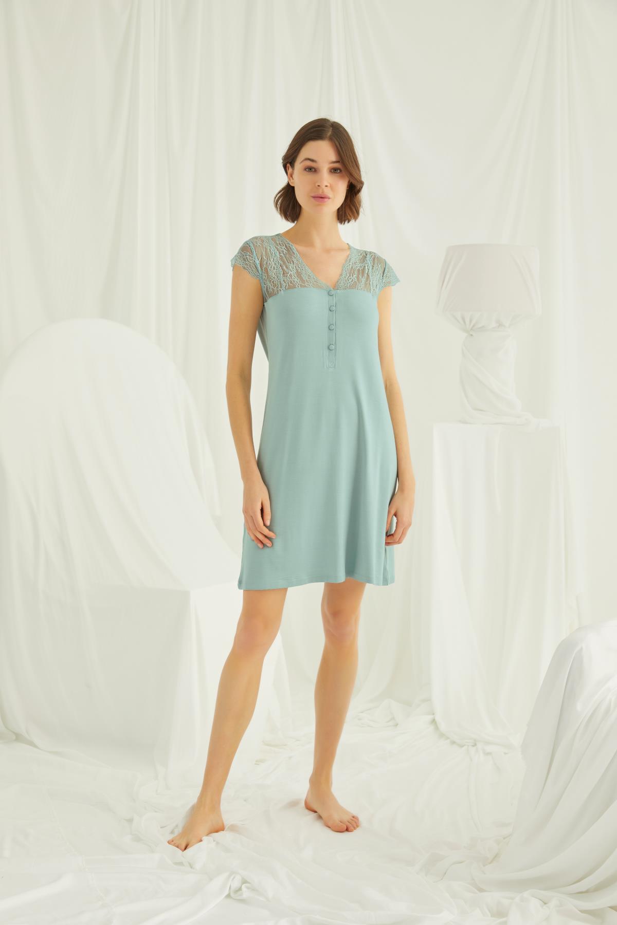 Gecelik: Açık yeşil renklidir, V yakalıdır, kısa kolludur, kolu ve omzu göğüs hizasına kadar dantellidir, yakasının altı düğmelidir, örme kumaştır.