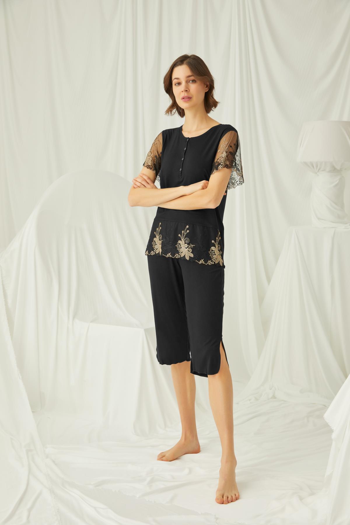 Ev yaşamında gün boyu süren konfor Monamise Kapri Takımları ile mümkün. Hayatımızda en rahat hissettiğimiz ve dinlenme alanı olan evimizde en rahat kıyafetleri giymek isteriz. İşte tüm bu ihtiyaçlar göz önüne alınarak Monamise Kapri Koleksiyonu üretildi. Şıklığından ödün vermek istemeyenlere dantelli kapri takımları, genç görünüm sevenlere dinamik desenli kapri takımları üretildi. Sen hangisini seçersen seç ikisi de konforlu bir gün ve uyku vaat ediyor. Mevsim geçişlerinde ne giyeceğim derdine son vermesi için kapri koleksiyonunu ürettik. Yüksek pamuk, viskon ve modal içerikli yapısı ile pijamaların arasına favorin olacak Monamise Kapri Koleksiyonu’na dolabında yer aç!