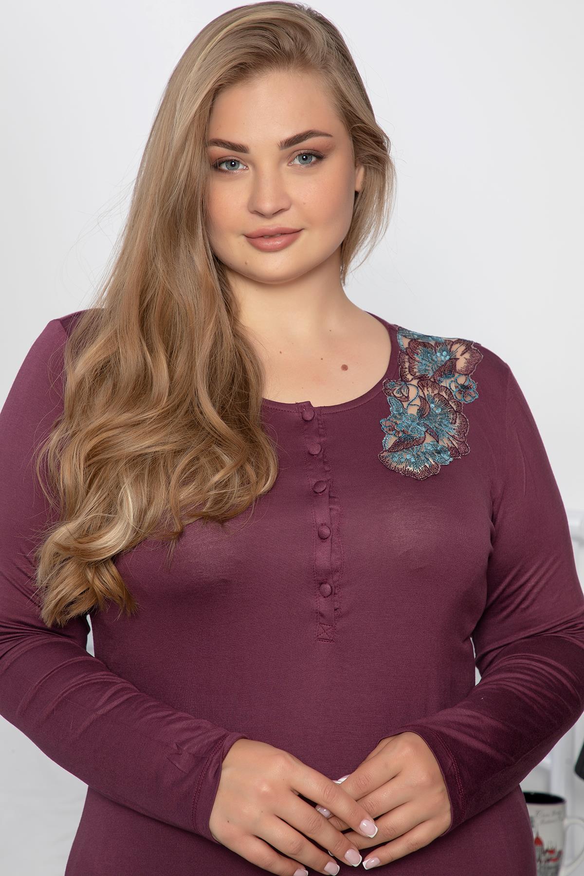 Gecelik: Bordo renklidir, bisiklet yakalıdır, omzu dantel detaylıdır, önü düğmelidir, uzun kolludur, örme kumaştır.