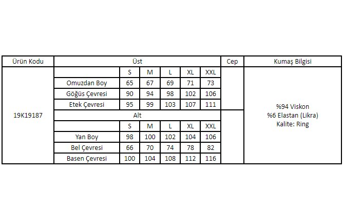 Üst: Gri renklidir, bisiklet yakalıdır, yakası damla detaylıdır, kısa kolludur, kolu ve etek kısmı brode dantellidir, örme kumaştır. Alt: Gri renklidir, örme kumaştır.